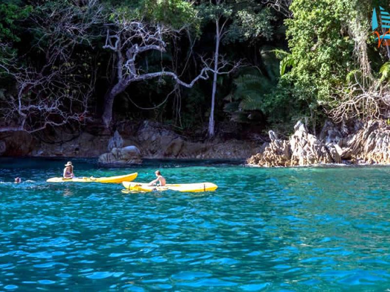 ¡Pasarás tu tiempo relajado en la playa o practicando actividades acuáticas; natación, snorkel, kayak, o paddle board en dos lugares famosos, cada uno situado en el borde de un arrecife circundante cargado de coloridos peces, corales y abundante vegetación.